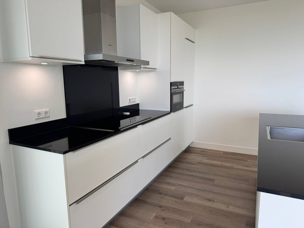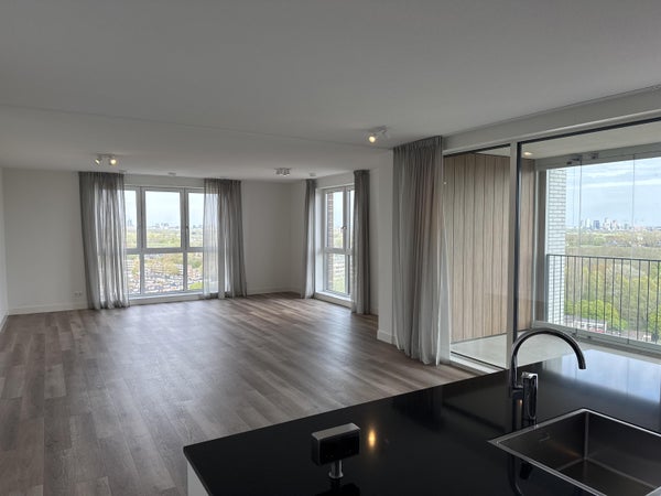 Very luxuriously finished apartment of 122 m², with 2 bedrooms, 1 bathroom, a bright living room, a luxurious open kitchen and access to a balcony of 14 m², facing east. Floor 17 (2 elevators) storage room in the basement. The balcony is equipped with a sliding sunshade and can be closed off ...Transfer