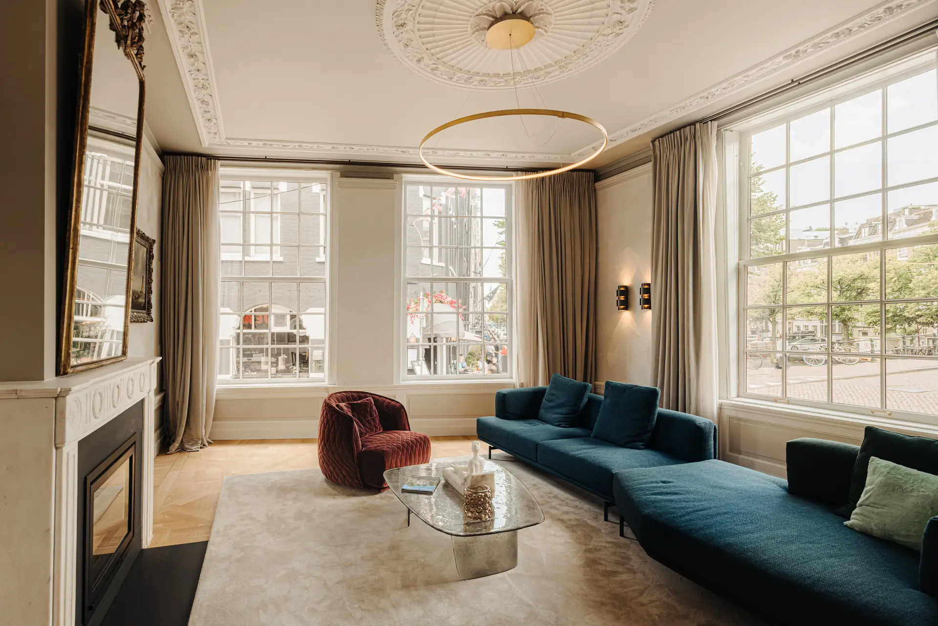 This monumental double canal house on Keizersgracht in Amsterdam, built in 1727, offers a unique home of 450 m², thoroughly renovated with luxury details. With a striking corner location, the house features three facade windows and stunning views. The sunny southwest garden is a peaceful oasis. ...Transfer