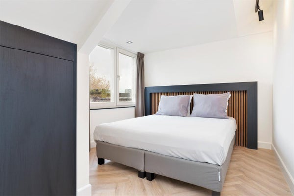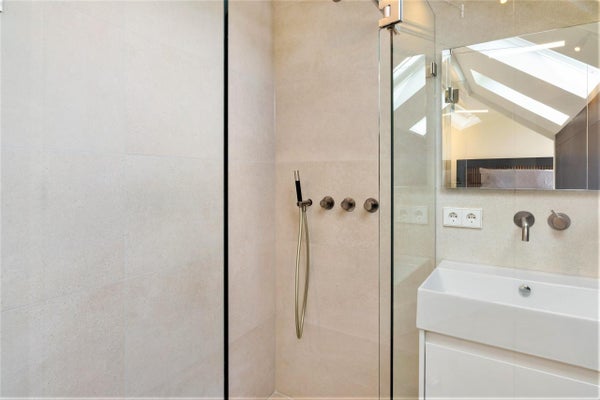 Charming HIGH-END penthouse (approx. 90 m2) located on the edge of the Amsterdamse Bos. This completely renovated luxury apartment has two bedrooms, two luxurious bathrooms, sleek open kitchen with island, a spacious roof terrace and a generous amount of high-quality custom built-in wardrobes. ...Transfer