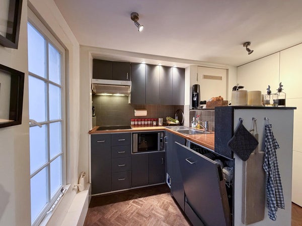 This charming apartment is located on the bel étage of a canal house from 1634, overlooking the Oudezijds Achterburgwal. Set in a quiet part of the old city center, near the Binnengasthuisterrein, it features three large windows and a 4.5-meter high ceiling that provide plenty of light. The ...Transfer