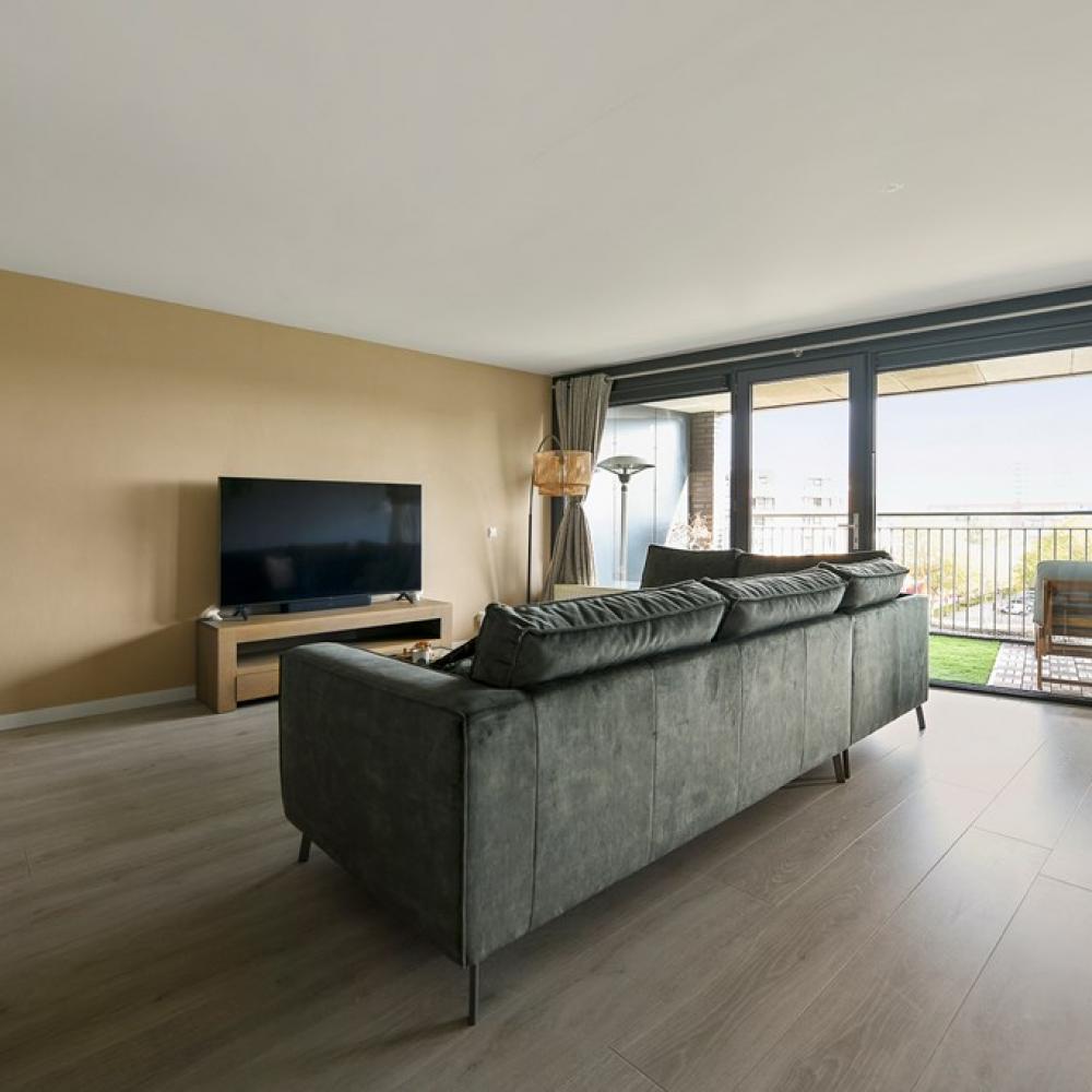 This modern, well-maintained 2-bedroom apartment of 97m2 is located on the fifth floor of the Geuzenpoort complex, offering a beautiful green view. The spacious open-plan living area and modern kitchen are fully equipped with built-in appliances. Enjoy the large east-facing balcony perfect for ...Transfer