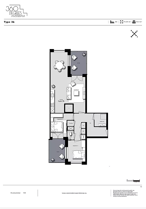 Located in the 360 Degrees Amsterdam project, this three-room apartment of approximately 73 m² features an outdoor space of about 16 m². The home is efficiently laid out with a central entrance providing access to all rooms. The living room with open kitchen is situated at the front and opens ...Transfer