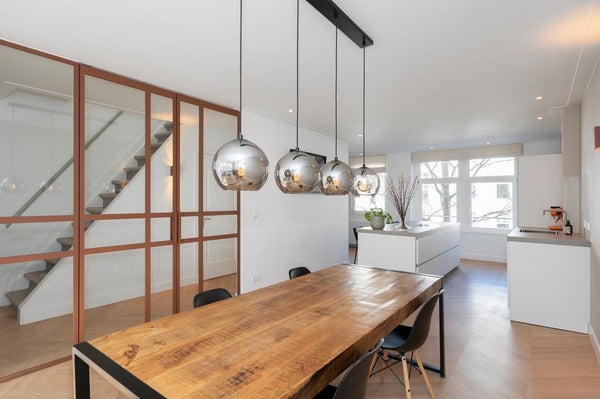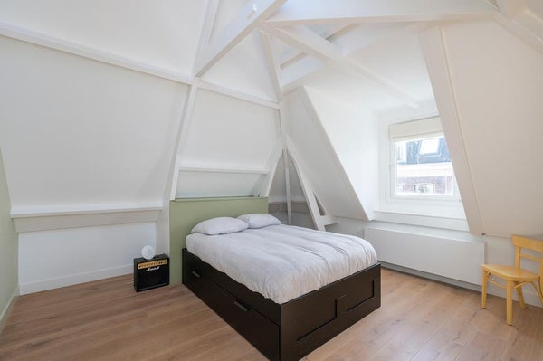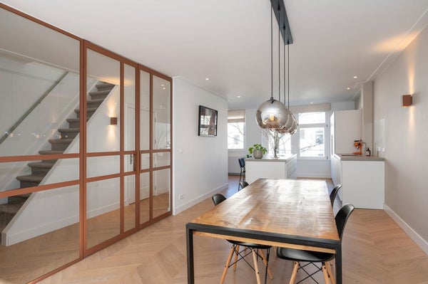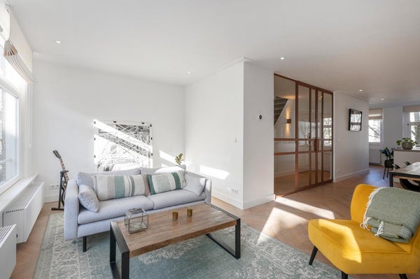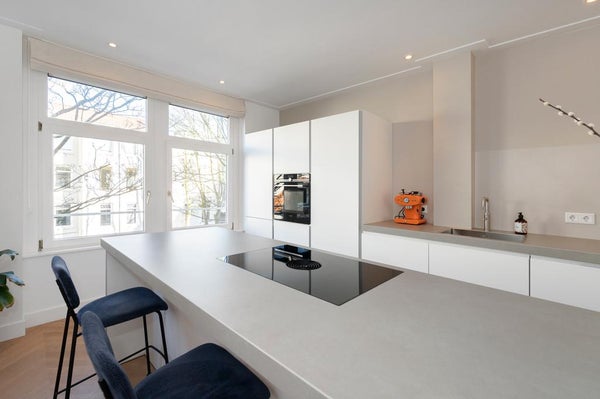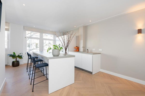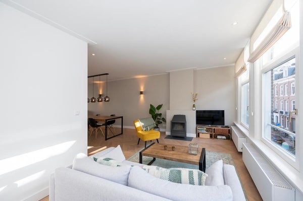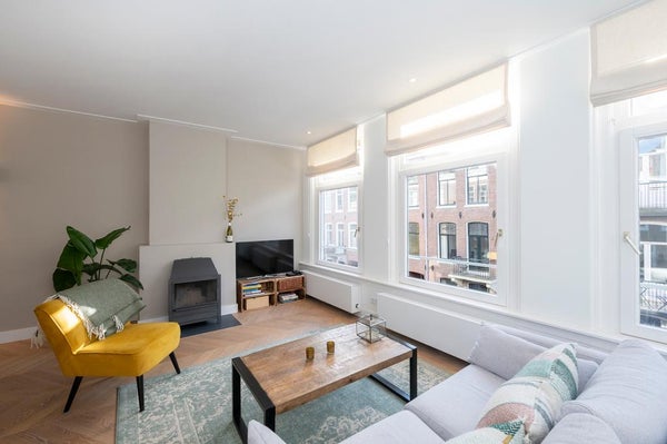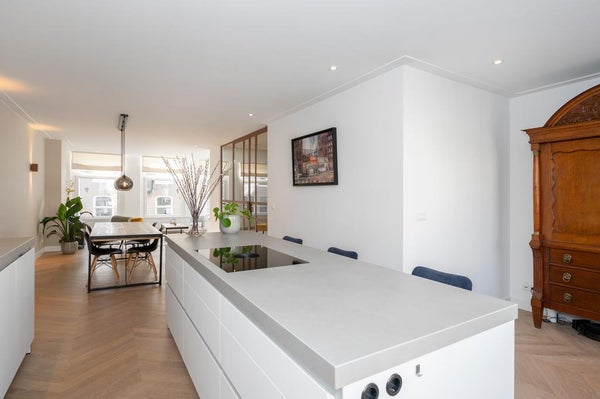 In a quiet street next to Vondelpark we offer this incredible double top apartment. The apartment has undergone a high quality renovation over the summer, including a new open-concept kitchen, stunning hardwood herringbone floor, fresh plastered walls, a bathroom with a freestanding bathtub, ...Transfer