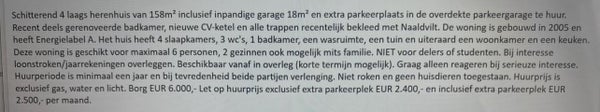 Suitable for a maximum of 6 people, 2 families are also possible if they are related. NOT for sharers or students. Deposit EUR 6,000,- Rental period is at least one year and can be extended by mutual satisfaction. NO smoking and NO pets allowed. Rent is exclusive of gas, water, and electricity. ...Transfer