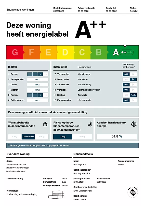 This modern 3-room apartment is located on the 14th floor of The Roofs in the heart of The Hague, offering an area of about 67.6 m². Featuring a bright living room that transitions into a kitchen, this apartment is perfect for comfortable living. The kitchen is equipped with built-in appliances ...Transfer
