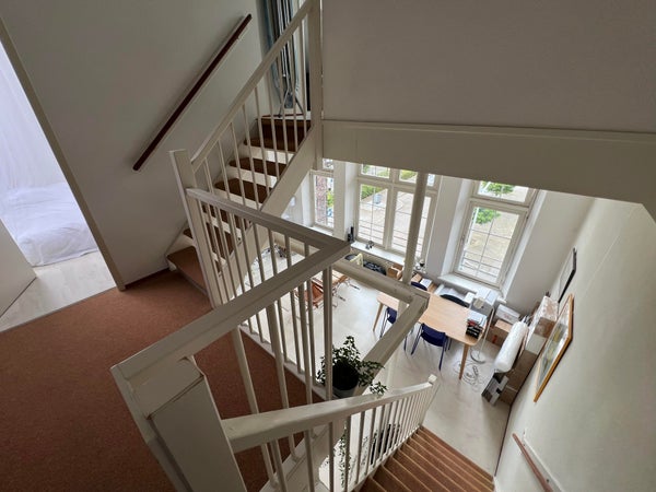 Beautifully renovated apartment in a former school building with beautiful city garden, private parking, storage room and 2 bedrooms. Beautiful city garden with optimal privacy and located in an absolute prime location in “De Bergen” just a stone's throw from Wilhelminaplein and all amenities. ...Transfer