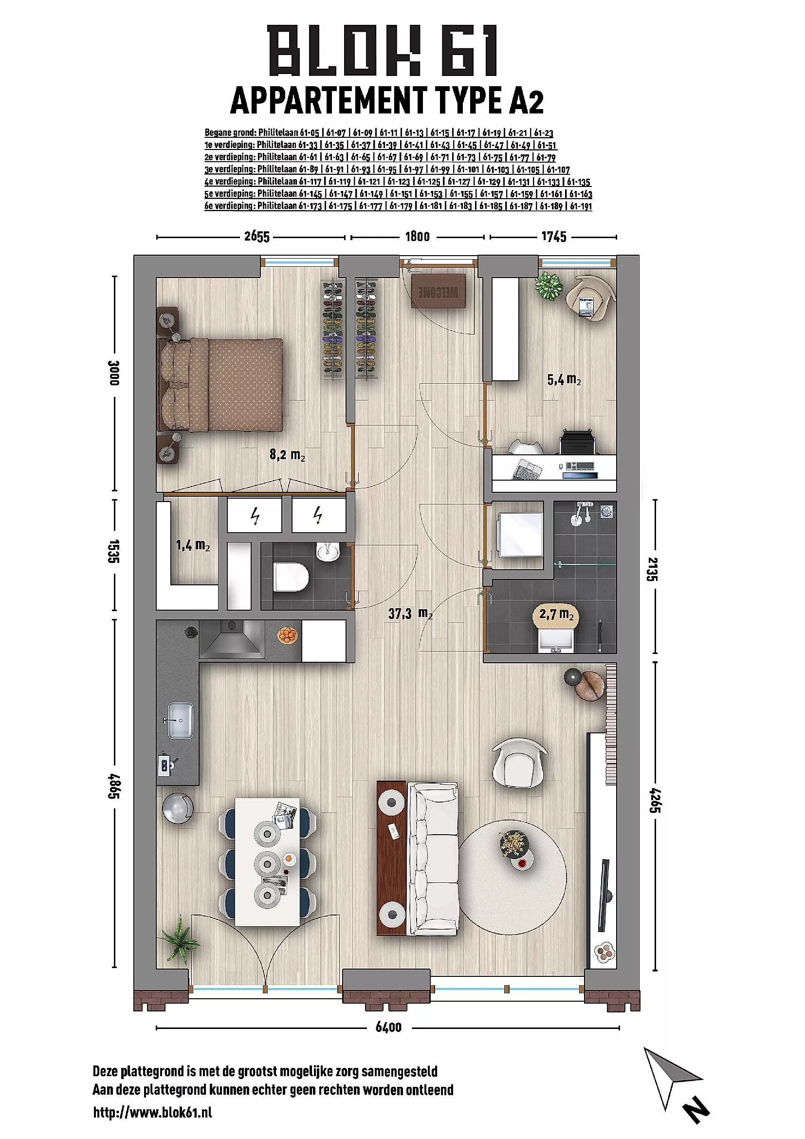 This functional apartment in Strijp-S, Eindhoven, features a practical layout and is located in block 61. Upon entering the central hall, you have access to all areas of the home, ensuring an efficient design. The living room, which forms the heart of the apartment, is connected to the kitchen, ...Transfer