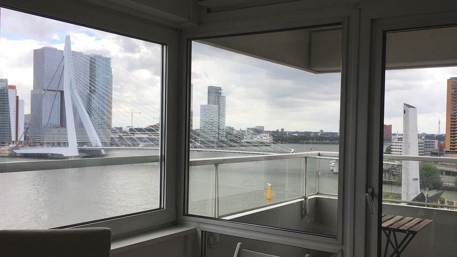This fully furnished apartment is located in the heart of Rotterdam and offers a breathtaking view of the Maas River. Fantastic fully furnished 3-room apartment, 80 m2 including 2 bedrooms on the 11th floor of the Boompjes tower ‘de Schoener’! The apartment has a south-facing balcony and offers ...Transfer