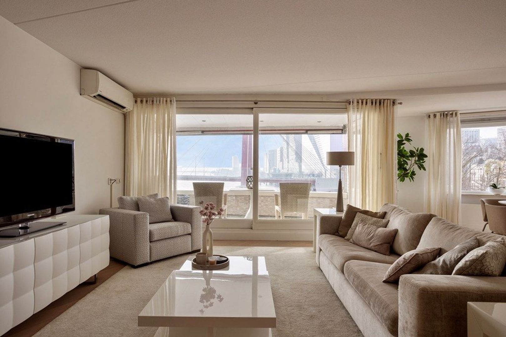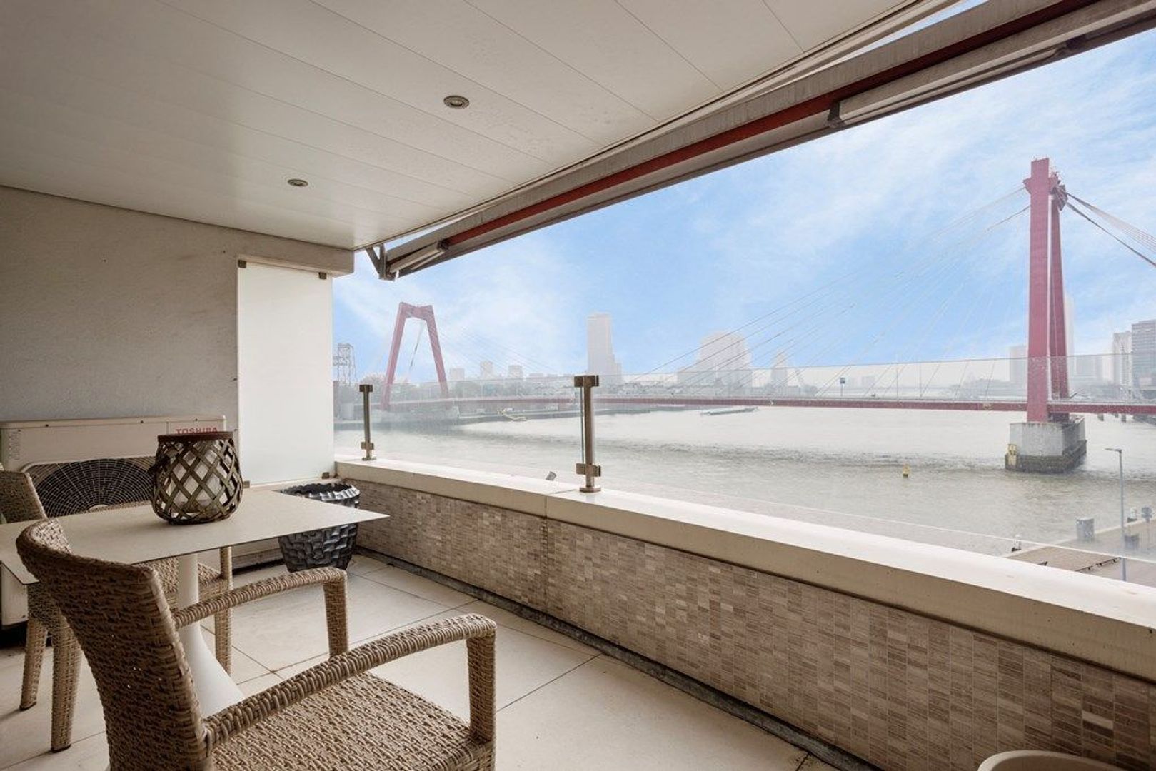 This luxurious, fully furnished 2-bedroom apartment with a balcony offers exceptional views over the Maas and Willemsbrug. Located on the Maasboulevard in Rotterdam, this apartment spans approximately 105 m². Upon entering, you'll find a spacious hall providing access to all rooms. The bright ...Transfer