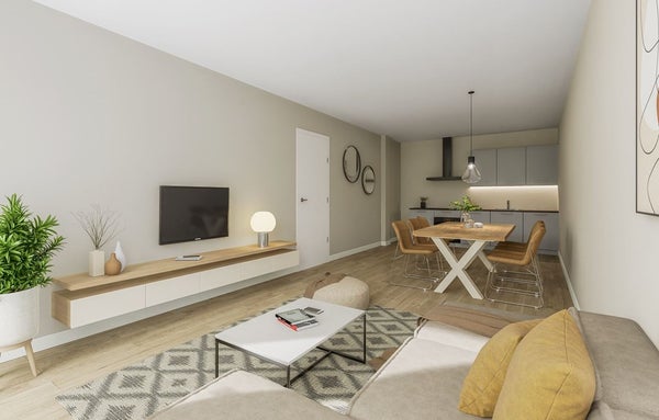 TE HUUR 3-kamer appartement NIEUWBOUW met energielabel A++++ Het appartement is uitgerust met een ruime hal, grote woonkamer en 2 slaapkamers. De stijlvolle Bruynzeel wandkeuken, compleet met hoogwaardige inbouwapparatuur, zoals een inductiekookplaat, koelkast, combimagnetron en vaatwasser. De ...
