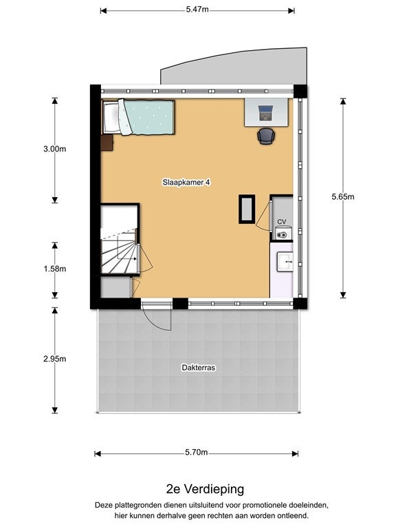- Aanwezig (59 m², gelegen op het zuidoosten)