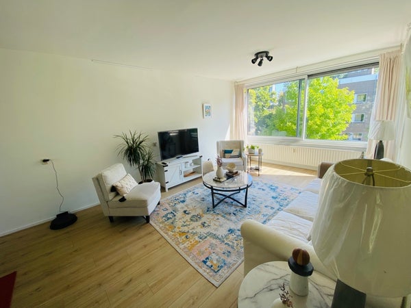Prachtig ruim èn goed verzorgd 3-kamer appartement van maar liefst 105m2 met lift en twee balkons (oost en west), gelegen op de tweede etage, met uitzicht op een mooi aangelegd plantsoen op een fantastische locatie in Amsterdam-Buitenveldert. Beschikbaar vanaf 2 maart 2026 en gestoffeerd ...Overdracht