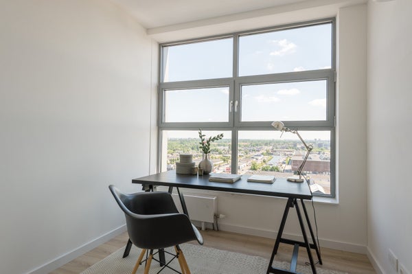 Dit prachtige maisonnette van ca. 94 m² bevindt zich op de 16e en 17e verdieping en biedt een adembenemend uitzicht over Amsterdam vanaf het noordwestelijke terras. De woning beschikt over 3 slaapkamers en een luxe Pallas Bruynzeel keuken, compleet met zwart composiet aanrechtblad en hoogwaardige ...