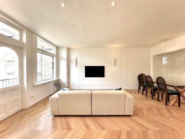 Stylish, renovated, beautifully designed, and exclusive two-bedroom apartment with designer furniture, located on the charming Nieuwe Kerkstraat. This 75 sq.m. furnished apartment offers a perfect blend of comfort and elegance, featuring two bedrooms, a bathroom, a living room, a fully equipped ...Overdracht
