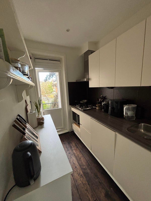 Charming and bright fully furnished apartment of 50 m² with a lovely southeast-facing balcony in a very desirable location in the city: the lively and cozy Kinkerbuurt. ONLY CONTACT THROUGH E-MAIL! The apartment features 1 bedroom, modern kitchen, luxury bathroom, spacious attic, high ceilings, ...Overdracht