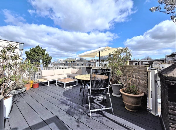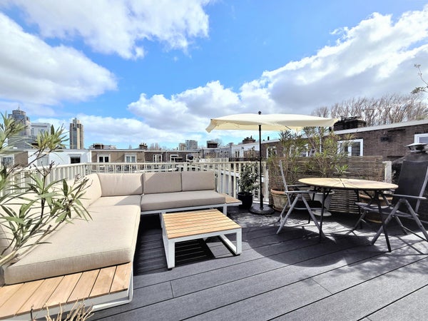 Licht en zeer royaal appartement met zonnig dakterras in de Rivierenbuurt Heerlijk ruim en licht dubbel bovenhuis van circa 120 m², verdeeld over de tweede en derde verdieping. Met een fantastisch zonnig dakterras van circa 22 m² én een balkon, geniet je hier optimaal van het buitenleven. ...Overdracht