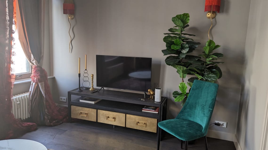 In het hart van het museumdistrict van Amsterdam bevindt zich dit volledig gemeubileerde éénslaapkamer appartement van 59 m². Het appartement beschikt over een ruime woonkamer, een slaapkamer met een comfortabel tweepersoonsbed, en een open ensuite badkamer met een inloopdouche en een groot bad. ...Overdracht