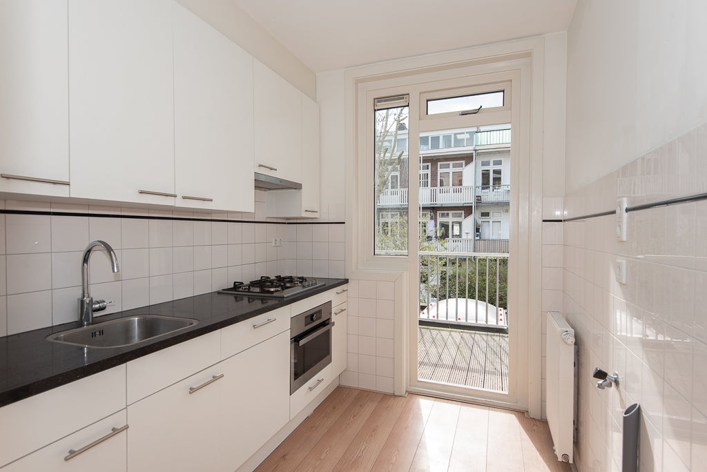 Dit ruime appartement van circa 53 m² ligt op de eerste verdieping in de Rivierenbuurt van Amsterdam Zuid. Het beschikt over een grote woonkamer en een aparte slaapkamer met wastafel. De luxe keuken is voorzien van inbouwapparatuur zoals een gasfornuis, oven en vaatwasser. De badkamer bevat een ...Overdracht
