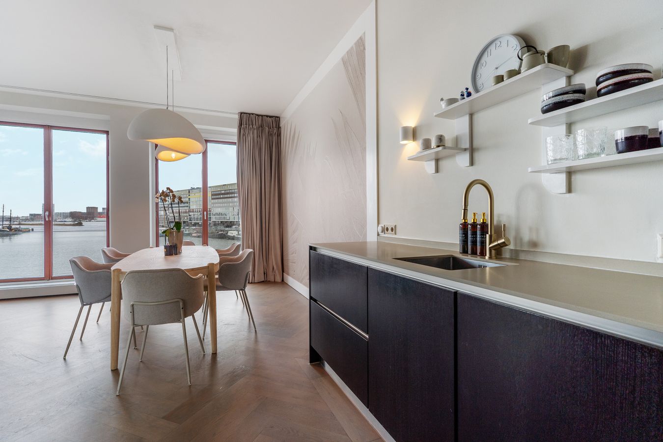 Dit recent gerenoveerde appartement in Amsterdam, met een oppervlakte van ongeveer 85 m2, biedt een prachtig uitzicht over het IJ en is uitstekend gelegen voor expats. Bij binnenkomst in het appartement, dat bereikbaar is via de trap of lift, komt u in een lichte woonkamer met grote raampartijen. ...Overdracht