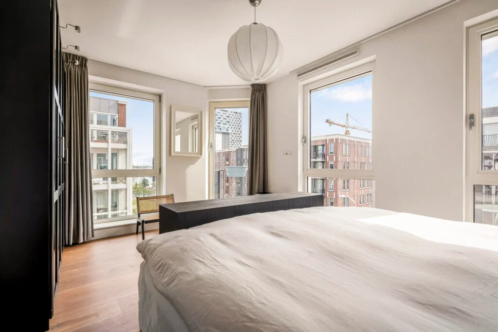 Dit lichte hoekappartement met panoramisch uitzicht op de Houthavens en het IJ ligt aan het levendige Memeleiland 176 in de Amsterdamse Houthavens. Het moderne en volledig gemeubileerde 3-kamerappartement van circa 83 m² heeft grote ramen die zorgen voor veel licht. De indeling omvat een lichte ...Overdracht