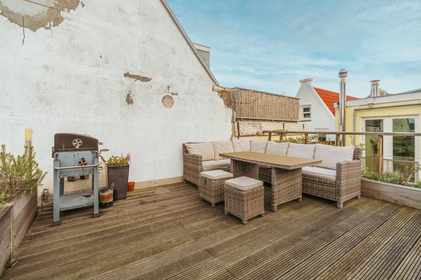 Nice furnished loft apartment of 110m2 on the top floor of the canal house 'Huijs te Leeuwenburg' with a large private roof terrace of plus minus 60 m².Available now. Bright L-shape living room with fire place, skylights in the ceiling, and with access to the roof terrace. Fully equipped semi ...Overdracht