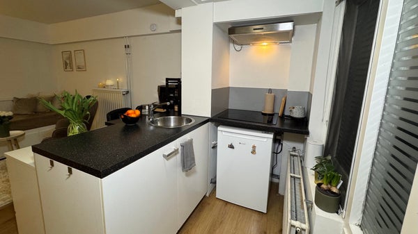 Woonruimte op de onderste verdieping van een jaren 50 woning aan de achterzijde van het pand. De studio is voorzien van een klein keuken in hoekopstelling en badkamer met douche, toilet en wastafel. Je hebt je eigen zeer ruime achtertuin. De ingang is via een achterom op de St. Janskerkstraat. ...Overdracht
