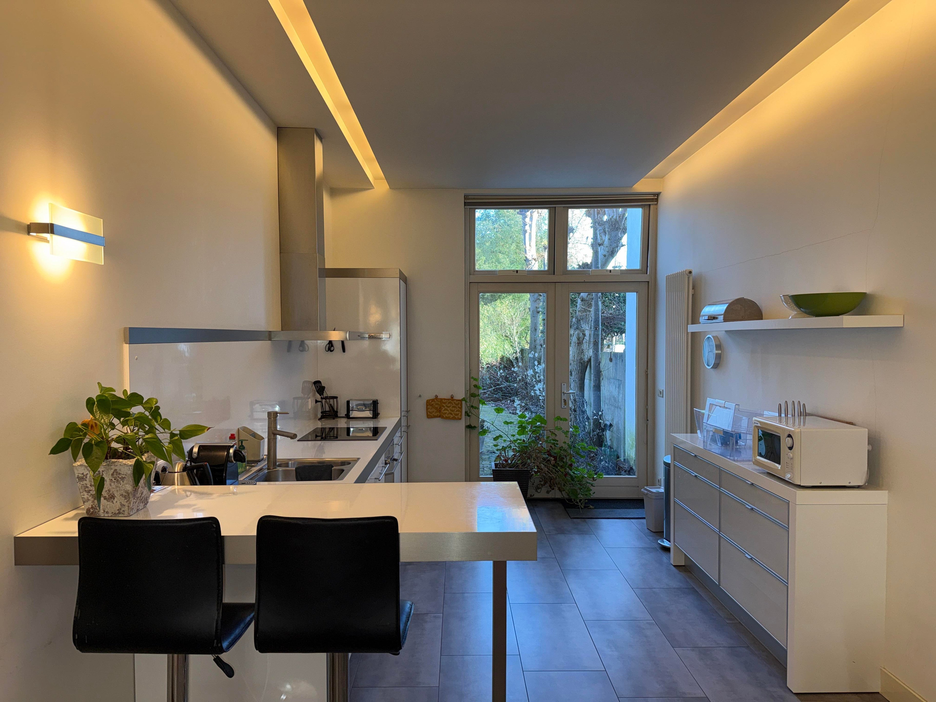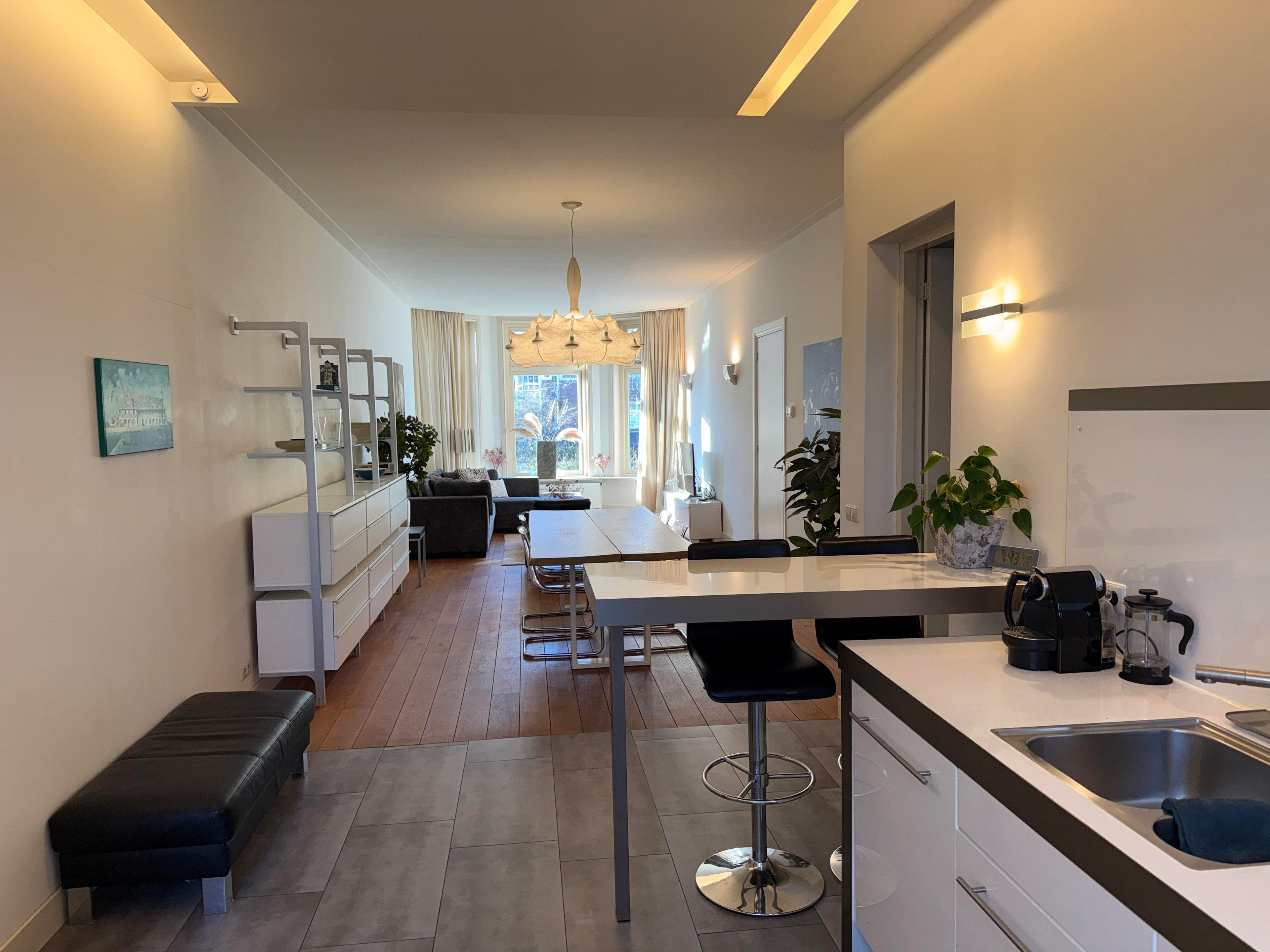 Een zeer royale, hoogwaardig gerenoveerde en uitgebouwde benedenwoning met een tuin op een fantastische locatie op loopafstand van zowel het bos als de binnenstad. Indeling; Entree, hal met toilet, een living van ca. 60m2 met een luxe open keuken v.v. alle comfort en openslaande tuindeuren. Een ...Overdracht