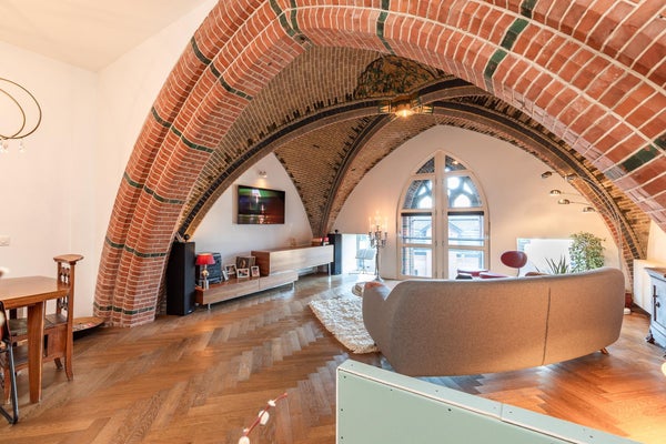 Bijzonder wonen in een monumentaal kerkgebouw uit 1888 – dat kan in deze prachtige maisonette aan de Brinklaan. De voormalige kerk is in 2003 omgevormd tot een stijlvol appartementencomplex met 32 woningen, waar historie en modern comfort hand in hand gaan. Indeling & Wooncomfort Via de ruime ...