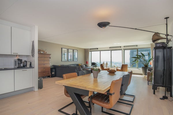 Op de 21e verdieping van "La Fenetre" bevindt zich dit luxe 3-kamer appartement met een prachtig uitzicht over het Bezuidenhout en het Haagse Bos. Het heeft een ruime living van bijna 70 m² met open keuken, twee slaapkamers en een moderne badkamer. Het appartement beschikt ook over een riant, ...Overdracht