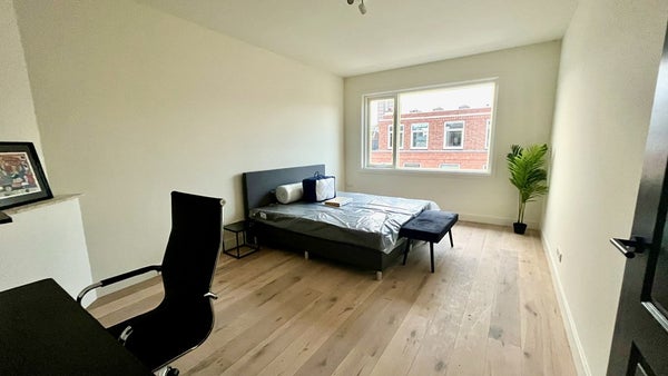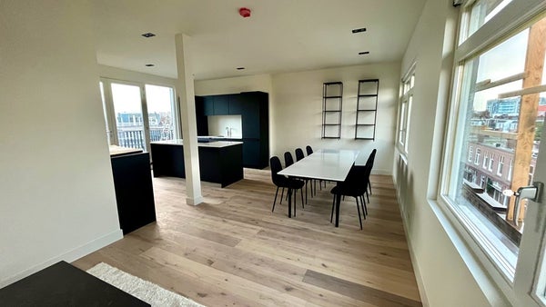 High-end renovated 4-bedroom apartment with modern and luxurious amenities, a roof top terrace and 2 balconies! This bright apartment features beautiful wooden flooring, floor heating, an open black design kitchen, two bedrooms, a luxurious bathroom, brand new furnishing and nice balcony! Ideally ...Overdracht