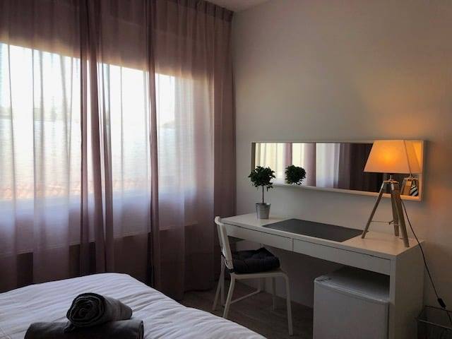 Deze nieuwe short stay kamer (Kamer 2) bevindt zich op de eerste verdieping boven een makelaarskantoor, in de buurt van het trendy Strijp S en het centrum van Eindhoven. De kamer van 22 m² is modern ingericht en omvat een kwalitatieve 2-persoonsboxspring, bureau, stoel, een eigen ijskastje, ...Overdracht