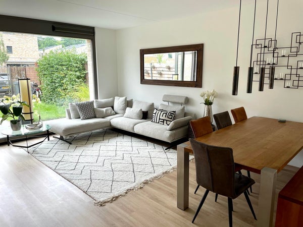 For rent a beautiful and spacious house with six rooms spread over three floors on the Deflectiespoelstraat in Eindhoven, in the very popular neighborhood of Strijp-R. The house was built in 2020. It has an area of 140 m2 and has a beautiful garden with sun terrace. The house has solar panels, a ...Overdracht