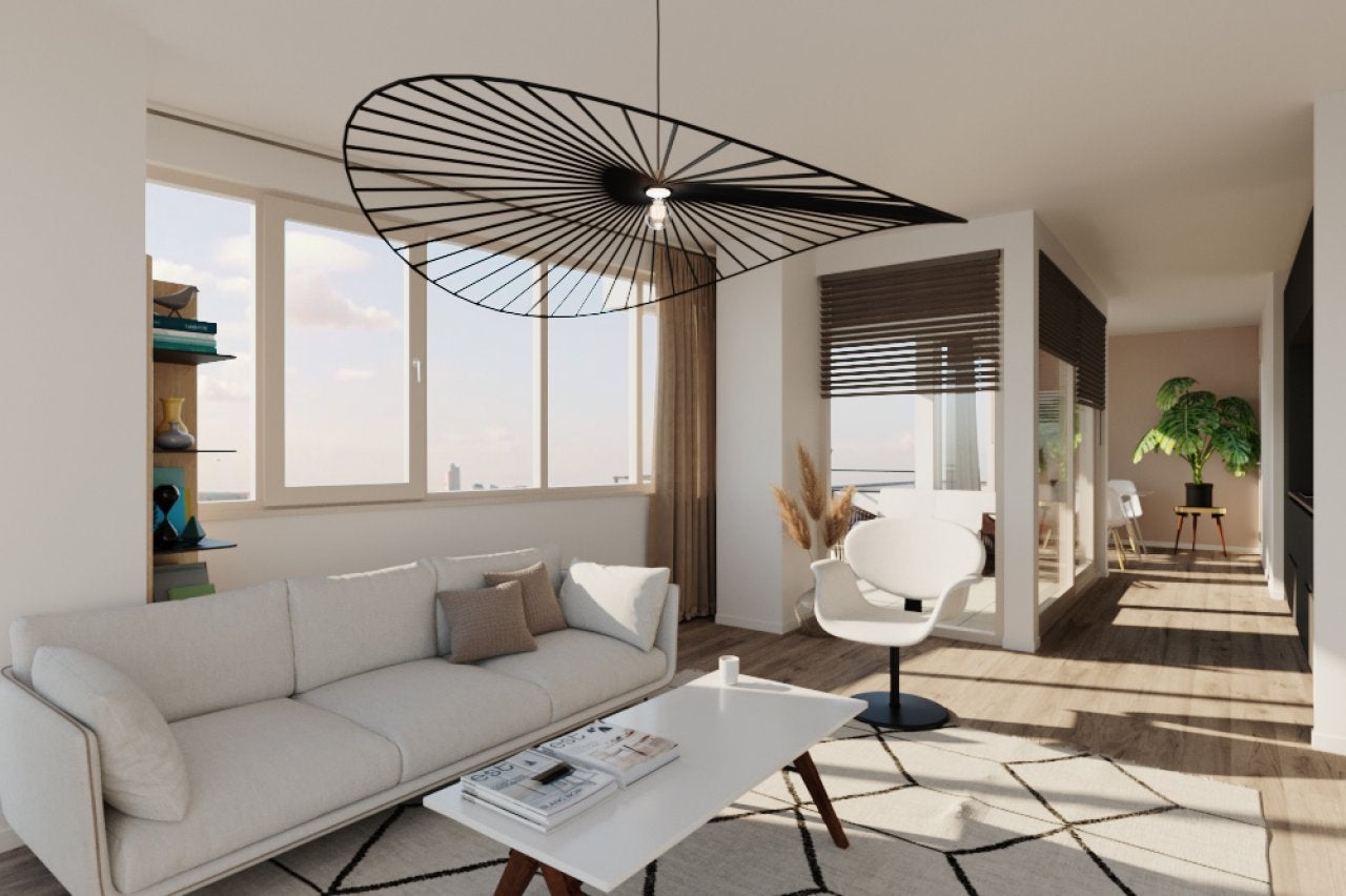 Per direct beschikbaar! Dit moderne 3-kamer appartement in de iconische Bunkertoren in Eindhoven biedt een hoogwaardige woonbeleving. Gelegen op de 22e verdieping met een oppervlakte van 77 m2 en een oostgeoriënteerd balkon van ongeveer 6 m2, geniet je van het uitzicht op het groen park dat aan ...