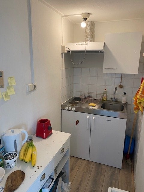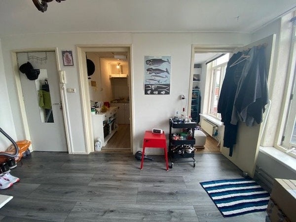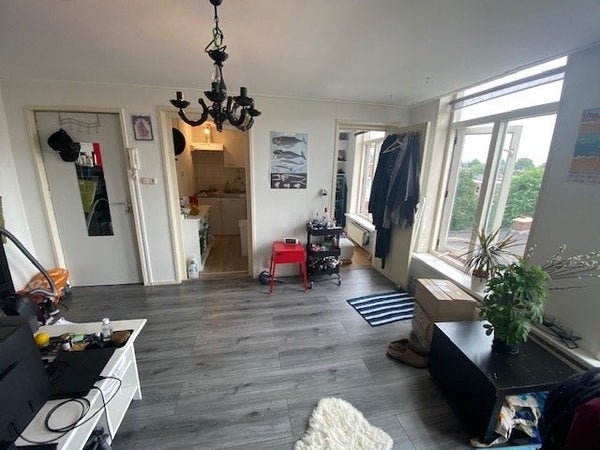 Mooie studio met eigen keuken en aparte slaapkamer beschikbaar per 1 april. De studio is gelegen op de 3e etage aan de achterzijde van de woning en beschikt over een eigen keukenblokje met koelkast en aparte slaapkamer van 5m2. De woonkamer is ca. 19m2 en de keuken 3m2. De laminaatvloer blijft in ...Overdracht