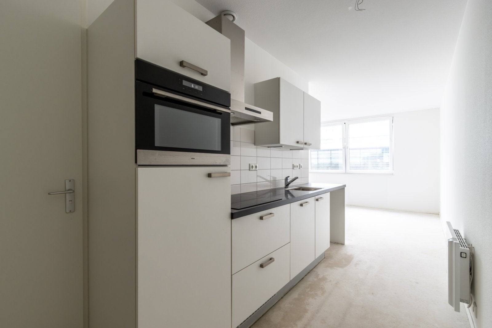 Compact wonen in een gezellige studio? Dit is mogelijk in deze woning van 48 vierkante meter in YOURS. Bij binnenkomst stap je in de woonkamer met open keuken. De Bribus keuken heeft een efficiënte rechte opstelling met witte kasten en een zwart composiet werkblad. Hier vind je moderne ATAG ...Overdracht