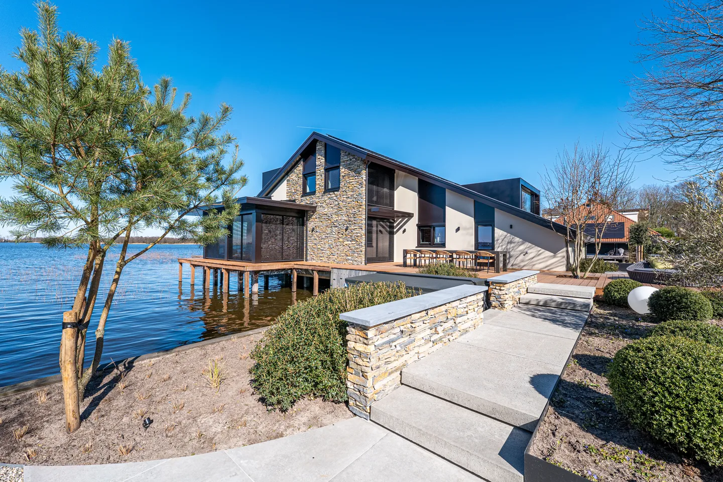 Op een prachtige locatie aan de Loosdrechtse Plassen staat deze vrijstaande villa op een perceel van circa 2.550 m². De villa is volledig verbouwd in ****** en beschikt over energielabel A+++, met 57 zonnepanelen en volledige isolatie. Luxe voorzieningen zijn onder andere een oprijlaant, ...Overdracht
