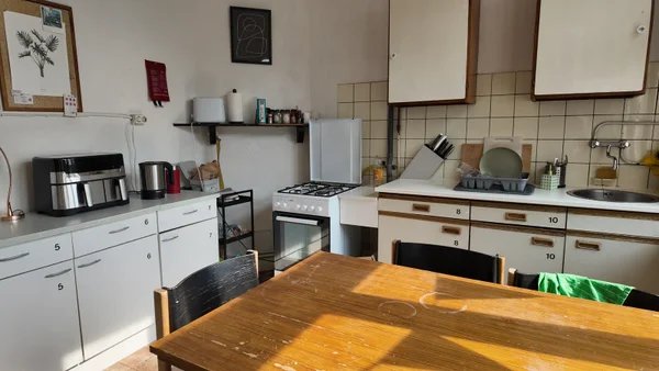 Kamer 8 met eigen wastafel gelegen op de tweede etage rechts voor. Kamer deelt op tweede etage met 4 andere studenten een keuken, badkamer met douche en WC. Balkon is voor 6 studenten. In de kelder ligt een gemeenschappelijke wasruimte.Overdracht