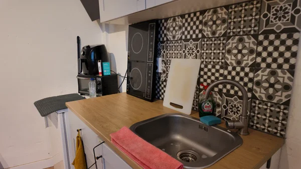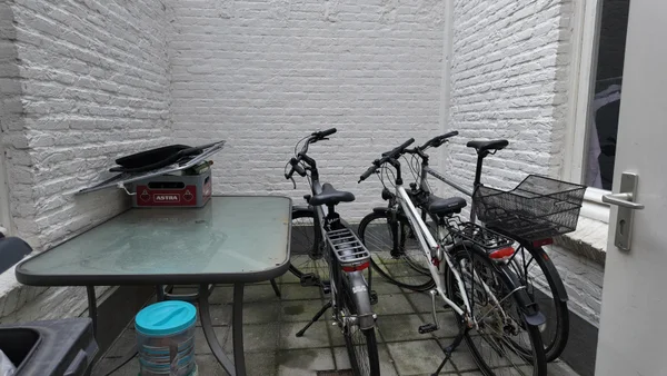 Kamer gelegen op de begane grond links achter in een studentenhuis. De kamer is een woon/slaapkamer met eigen keuken met apparatuur. Per etage is een badkamer met douche, wastafel en toilet en op de begane grond zijn 2 buitenruimtes waar ook fiets gestald kan worden.