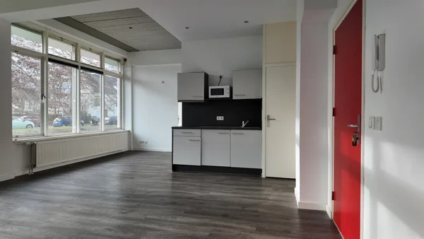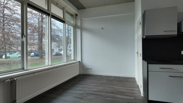 Mooie ruime studio in het campuscomplex 'Think Tank'. De studio ligt op de begane grond en heeft een ruime woonkamer met open keuken (incl. apparatuur), badkamer met wastafel, douche en toilet en op de vide is een slaapkamer. Op de begane grond ligt een gemeenschappelijke ontmoetingsruimte, ...Overdracht