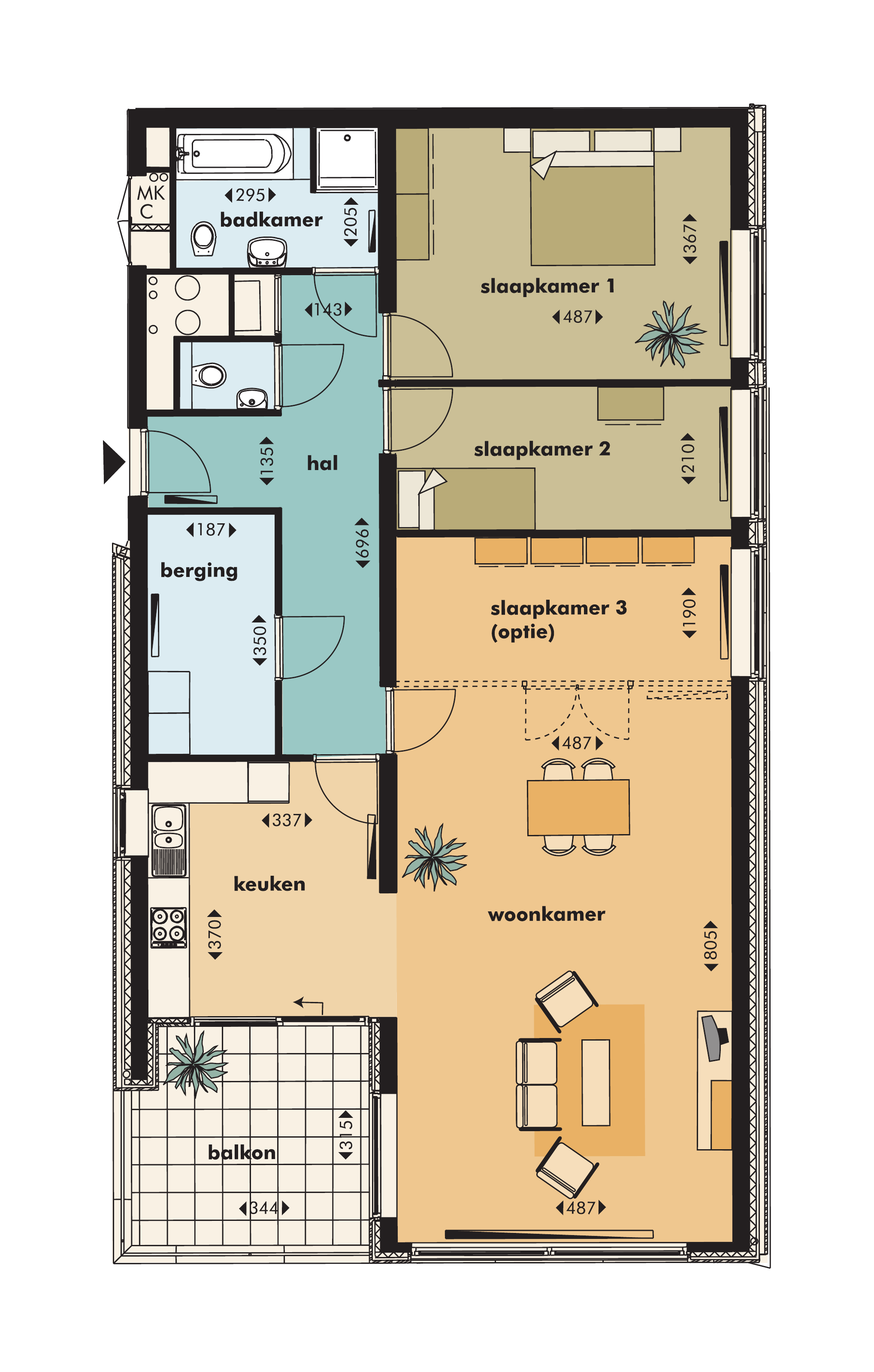 • 3 kamers