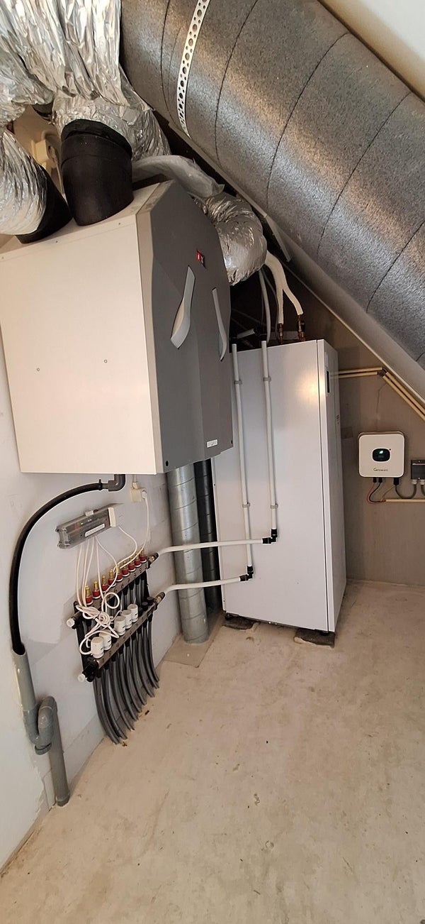 - Volledige vloerverwarming, Warmtepomp, Warmte terugwininstallatie