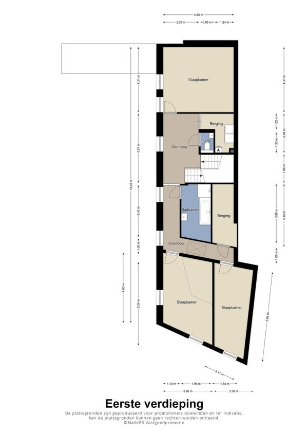 - Aanwezig (48 m², gelegen op het oosten)