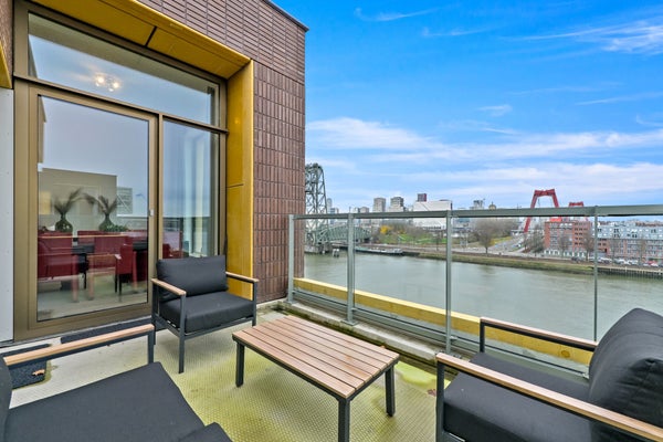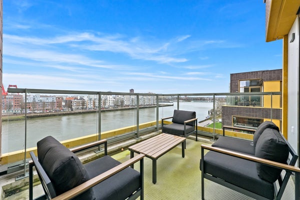 Op de zesde verdieping van dit moderne nieuwbouw complex aan het water bevindt zich dit sfeervolle en compleet gemeubileerde 3-kamerappartement. De woning valt op door het hoge plafond, een heerlijk terras met panoramisch uitzicht én een stijlvolle inrichting.Het uitzicht op onder andere de ...Overdracht