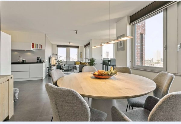 Op een fantastische locatie aan de Botersloot in hartje Rotterdam bieden wij dit ruime en luxe gemeubileerde 3-kamer appartement aan, gelegen op de 11e verdieping met een prachtig uitzicht over de stad. De woning bevindt zich op steenworp afstand van de Markthal, de bruisende Pannekoekstraat, de ...Overdracht