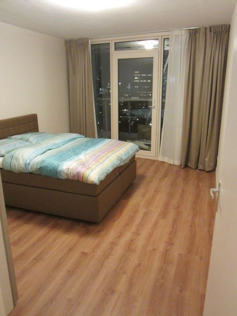 Dit op de 12e verdieping gelegen appartement in het Calypso-gebouw in het centrum van Rotterdam, bouwjaar 2014, biedt een prachtig uitzicht over de stad. Het volledig gemeubileerde appartement heeft een oppervlakte van 100 m² en bestaat uit drie kamers, waaronder twee slaapkamers. De grote ...Overdracht