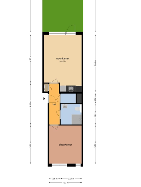 - Aanwezig (16 m², gelegen op het zuidwesten)