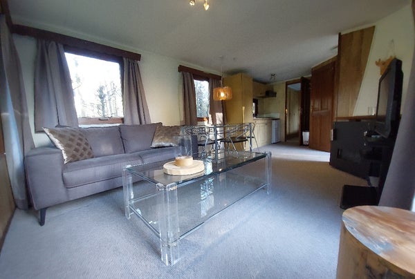 -****** - ****** voor Apeldoorn e.o. biedt aan: Fraai gelegen Chalet op klein Landgoed met uitzicht op natuurvijver. Apeldoorn Noord! Algemene informatie: Zeer mooi en rustig gelegen in het buitengebied van Apeldoorn aan de Kroondomeinen. Bosrijke omgeving. Uitzicht over natuurvijver. Grote tuin ...Overdracht