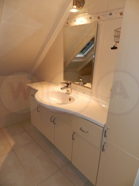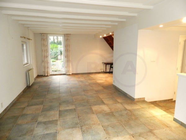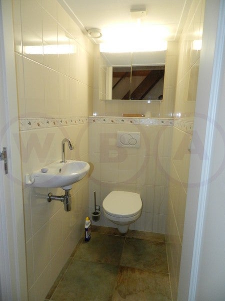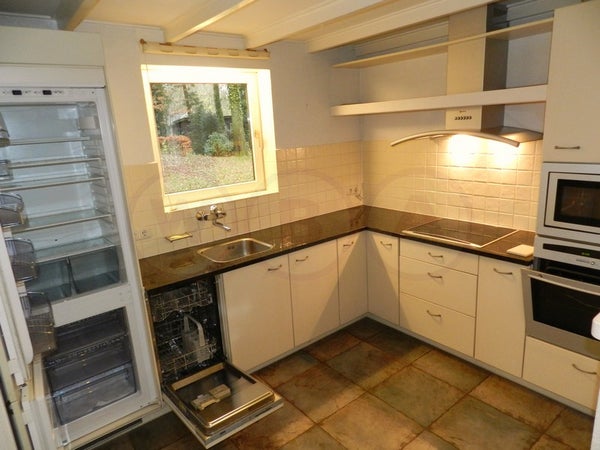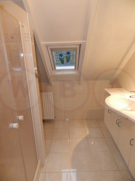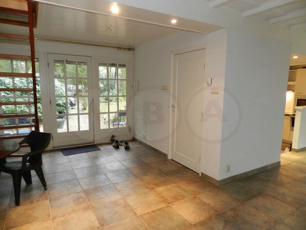 Indeling: Ruime woonkamer met open haard. Semi open keuken v.v. inbouw koelkast, vriezer, oven, magnetron, vaatwasser en elektrische kookplaat met wasemkap. Dichte serre met verwarming. Toilet en CV-ruimte met wasmachineaansluiting. 1e verdieping: Overloop, 2e toilet, badkamer met douche en ...
